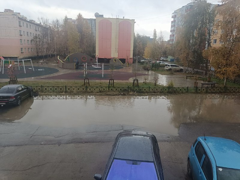 На самом деле подтопление данной парковочной площадки – это многолетняя проблема, и благоустройство в 2023 году детской площадки здесь не при чём. Для решения проблемы необходим проект отведения воды со всей прилегающей территории от ул. Тихонова между магазином «Экспресс» и домом по ул. Тихонова, 16А, с ремонтом бетонного покрытия или асфальтирования на ул. Советская.