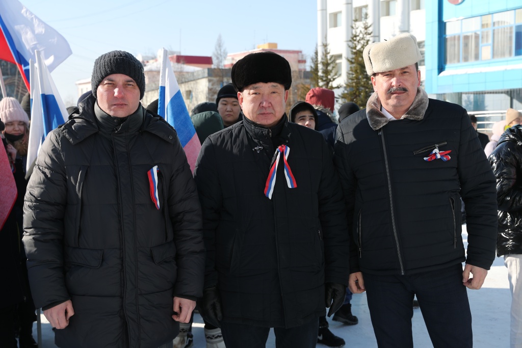 В митинге приняли участие депутаты Мирнинского районного и городского Совета, главы муниципальных образований, представители Администрации района и города, руководители и представители предприятий и организаций г. Мирного, почетные граждане г. Мирного, а также представители общественных организаций.