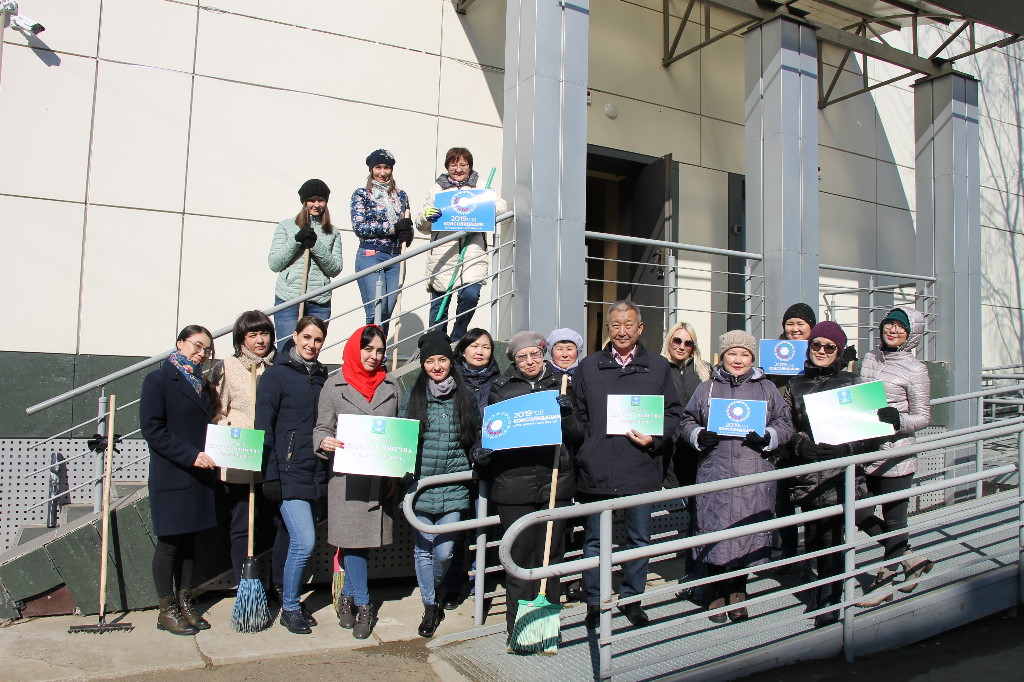 А в пятницу, 26 апреля, сотрудники городской администрации поддержали инициативу и вышли на народный республиканский субботник, посвященный Году Консолидации в РС (Я) и Году благоустройства в г. Мирном.