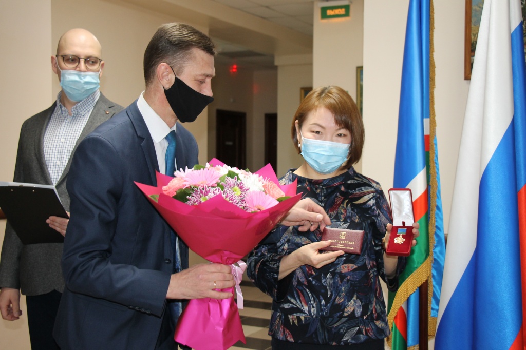 - Бурнашова Саргылана Станиславовна – заведующая отделением, врач-инфекционист инфекционного отделения ГБУ РС (Я) «Мирнинская центральная районная больница», за многолетний добросовестный труд, ответственный и профессиональный подход к делу, большой личный вклад в развитие системы здравоохранения города Мирного, самоотверженность, проявленную в период пандемии новой коронавирусной инфекции (COVID-19)