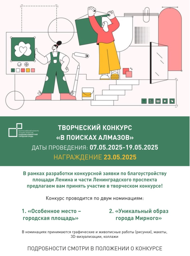 Администрация города приняла решение об участии города во Всероссийском конкурсе лучших проектов создания комфортной городской среды. Конкурсную заявку необходимо подать до 20 июня 2025 года.